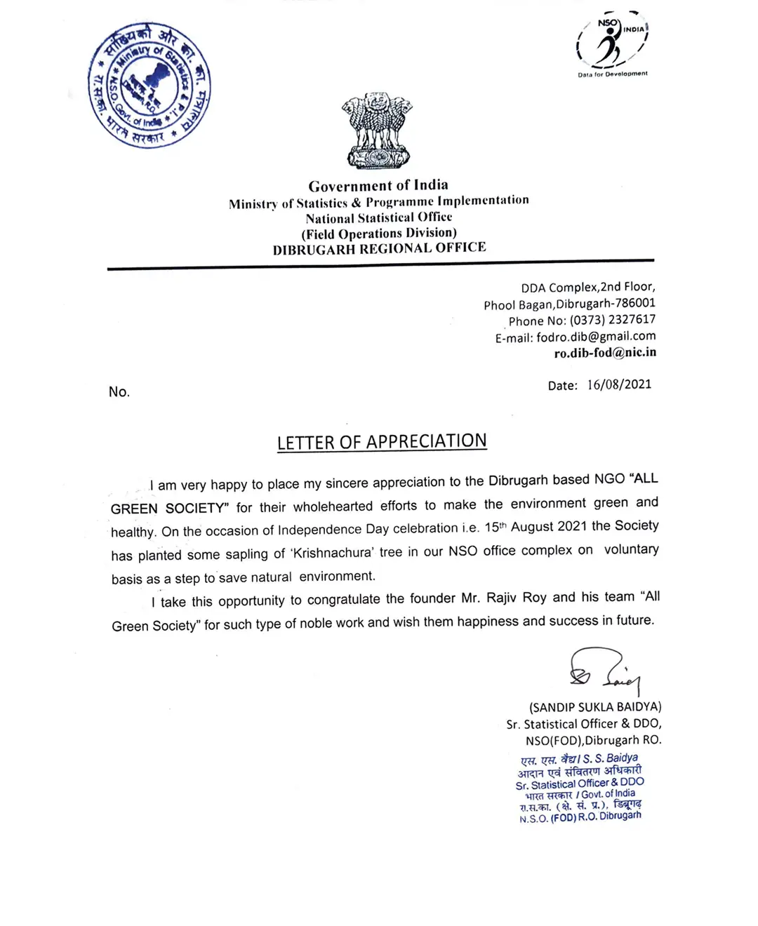 Founded in 2016 in Dibrugarh, All Green Society was established with a clear vision to combat environmental challenges and promote sustainable living. Registered under the Societies Registration Act, XXI of 1860, along with Registration No. RS/DIB/255/F/24 we began our journey with plantation drives and grassroots awareness campaigns.